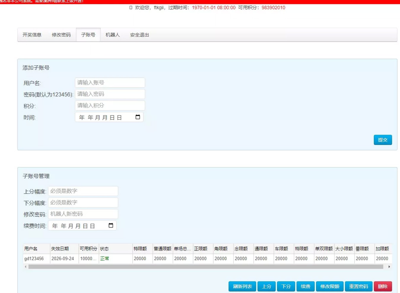 无限增加子账号及开房机器人,数据各自独立;