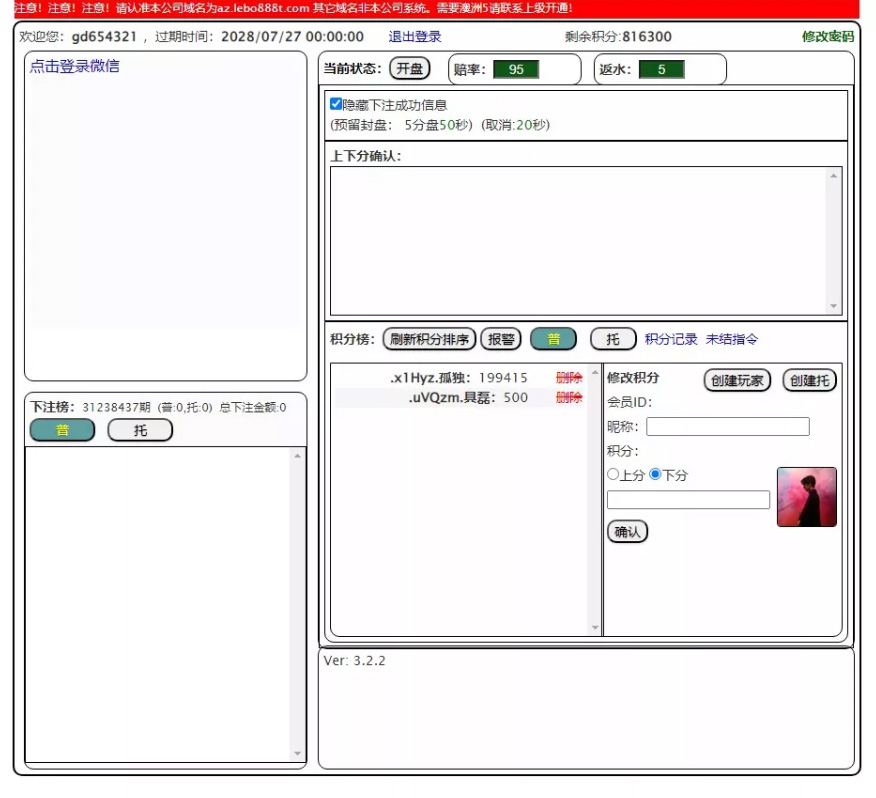 机器人后台 一键生成会员及托账号,两类账号均可设置自动或手动下注,