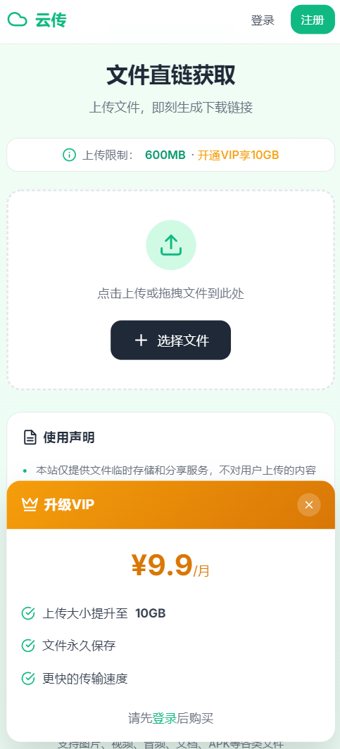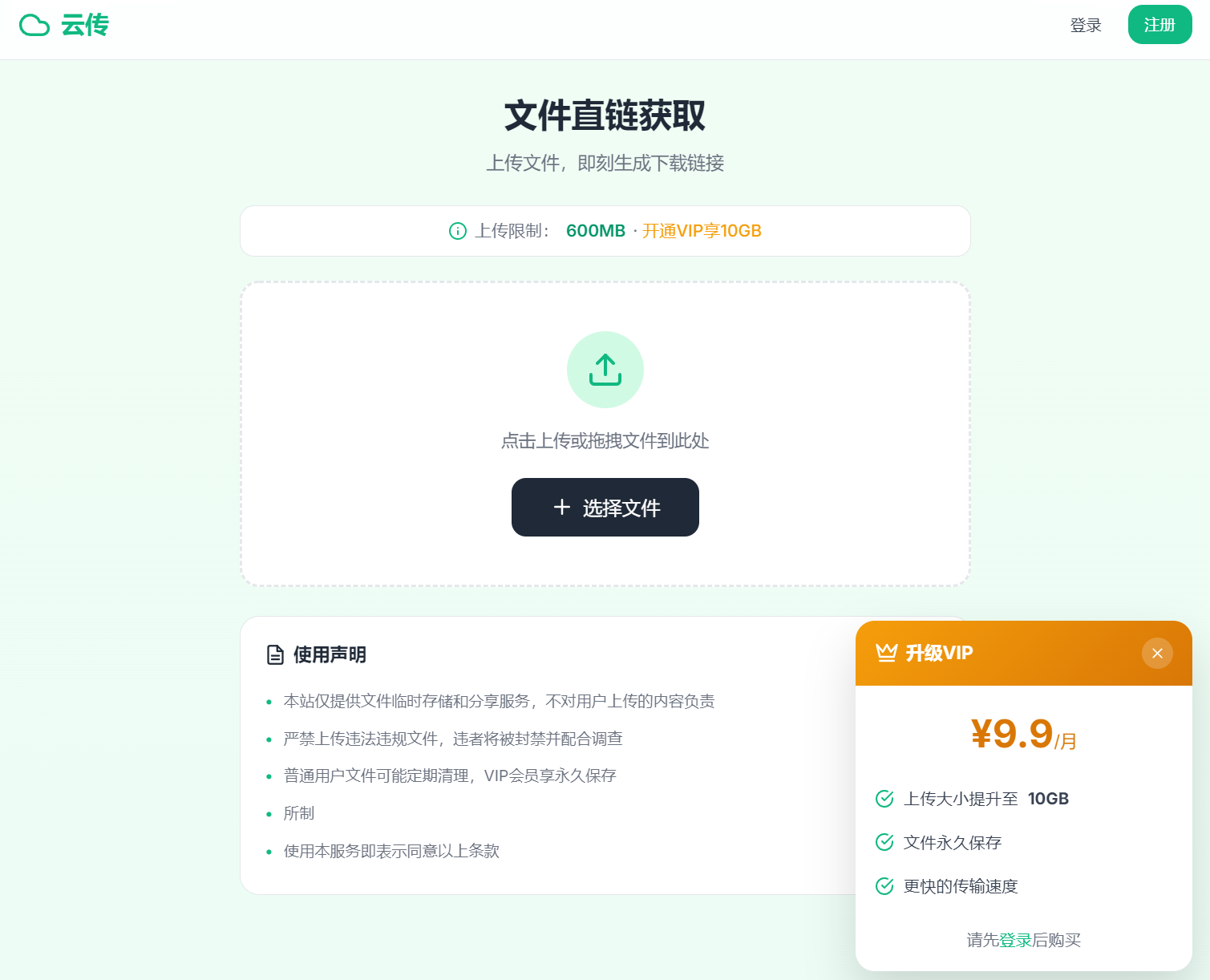 云传网盘收费系统/nodejs源码/可以二开/仿文叔叔在线云盘系统/文件直链上传系统