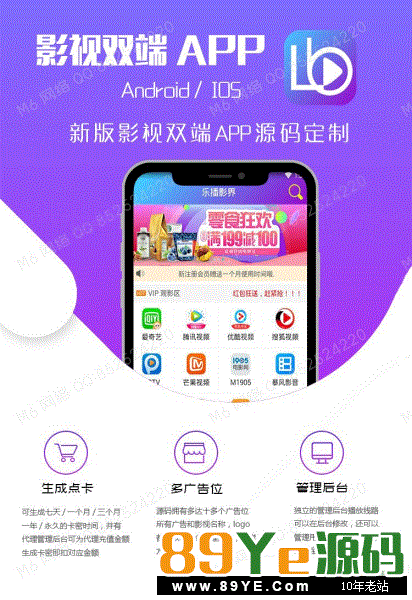 最新在线视频聚合VIP影视APP源码安卓/IOS苹果双端带后台代理分销系统
